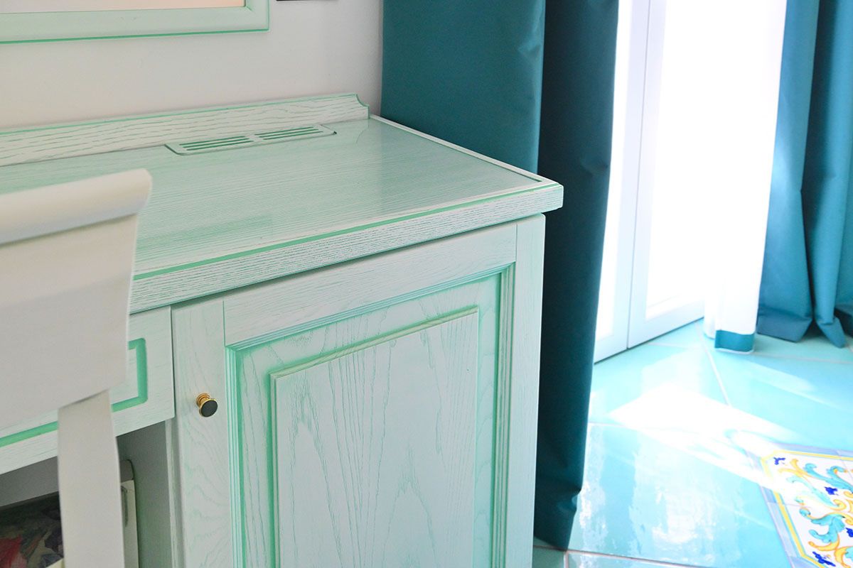 Choisies pour leur emplacement privilégié, nos chambres supérieures avec vue sur les montagnes vous offrent une expérience totalement relaxante. Les intérieurs, caractérisés par des murs insonorisés et un mobilier élégant, créent une ambiance confortable et privée. Les sols en céramique décorés à la main et les plafonds voûtés caractéristiques célèbrent l’artisanat local, tandis que le balcon privé offre des vues à couper le souffle sur la verdure luxuriante du mont Epomeo et de nos jardins.